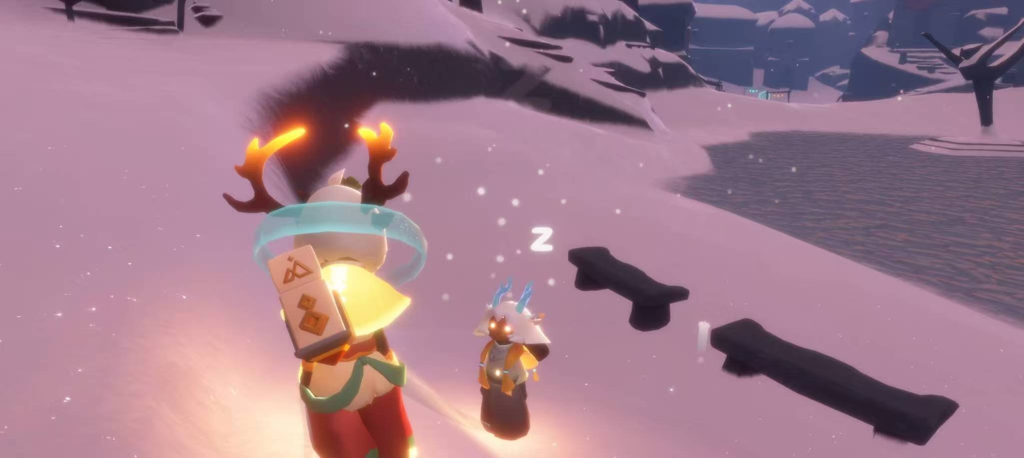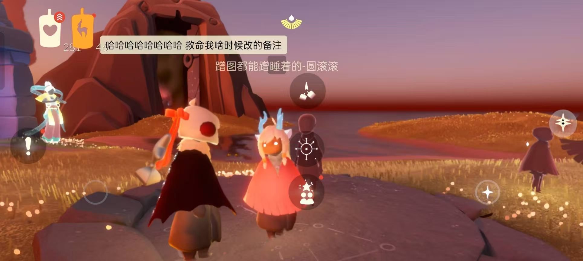 跑到霞谷她就不说话了我以为她干别的事情去了呢,结果跑到圆梦村发现咋叫她也没反应了,我一直叭叭叭(没啥用)后来我就截图跟她一起躺着了