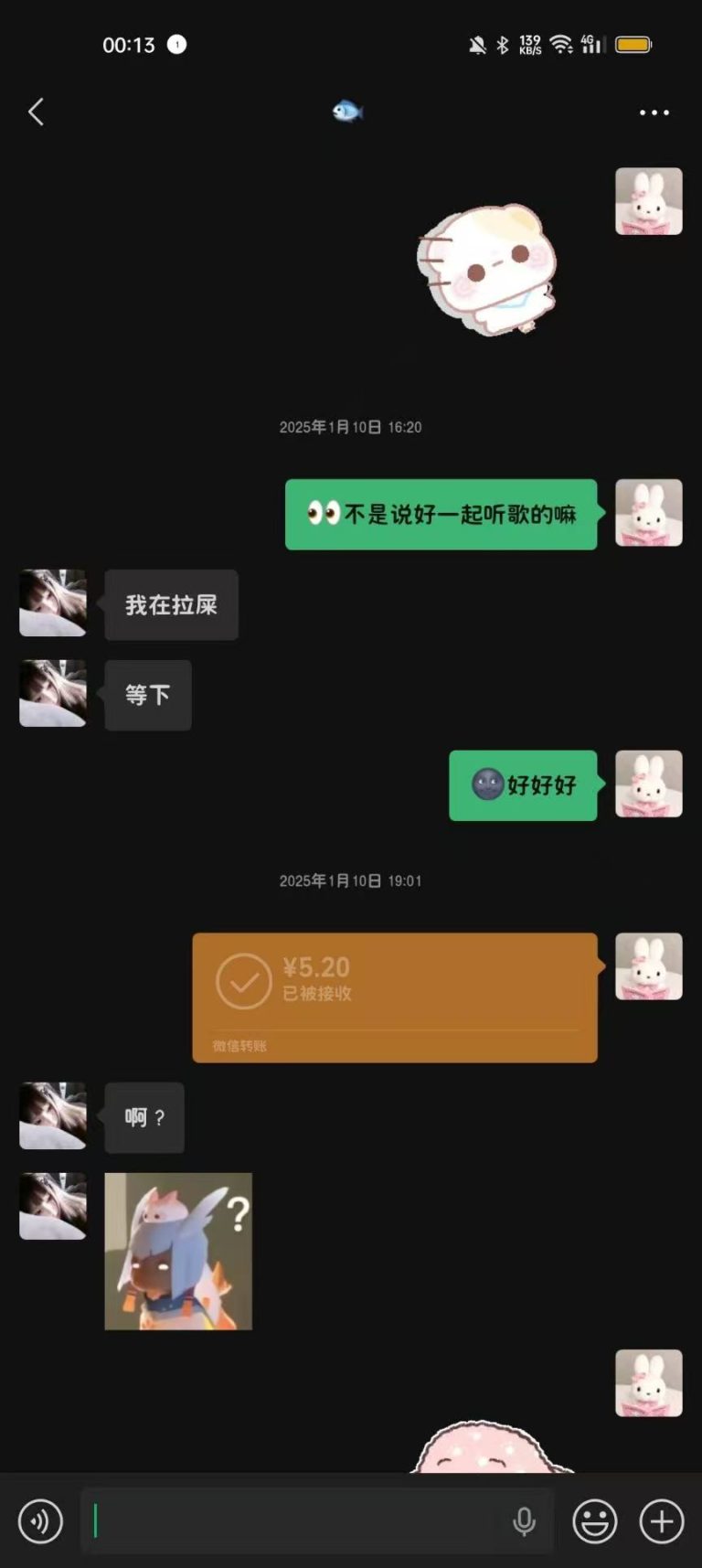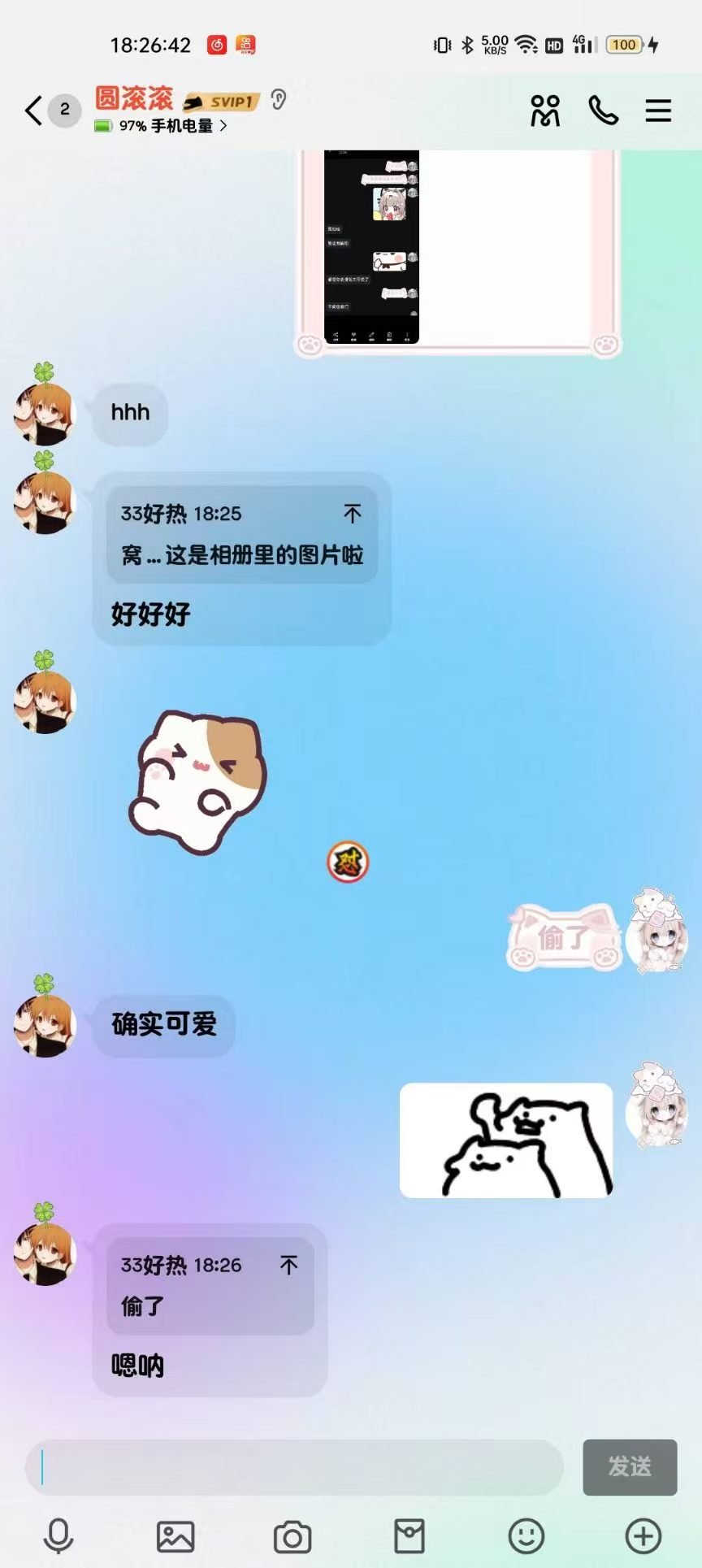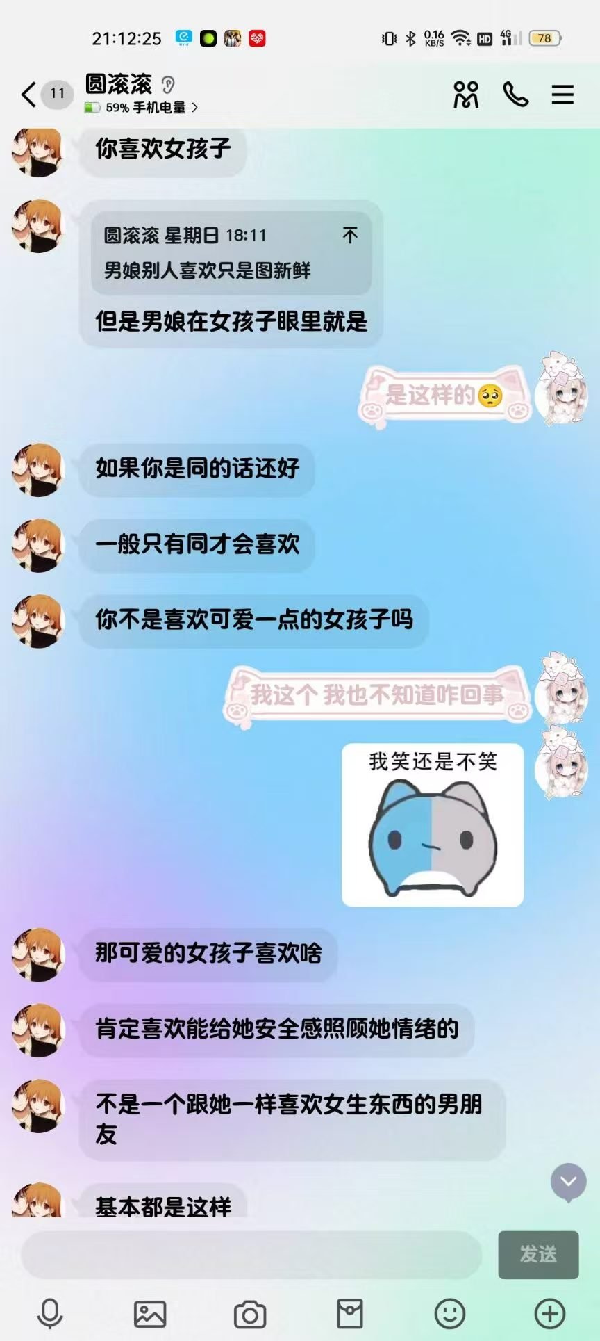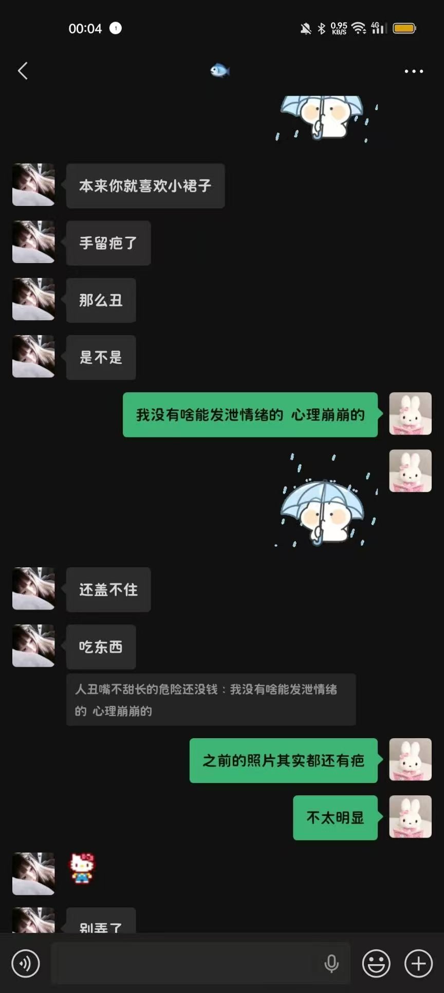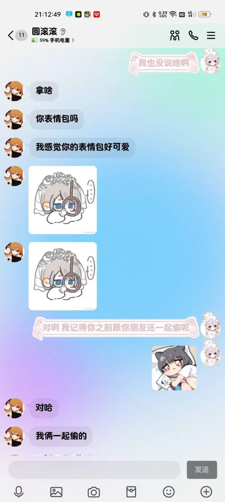 2024年12月1日21:34我们加回了微信好友,只是这会的滚滚跟第二人格一样发一些十八×的表情包所以自此以后她的微信备注就是“圆滚滚之第二人格”